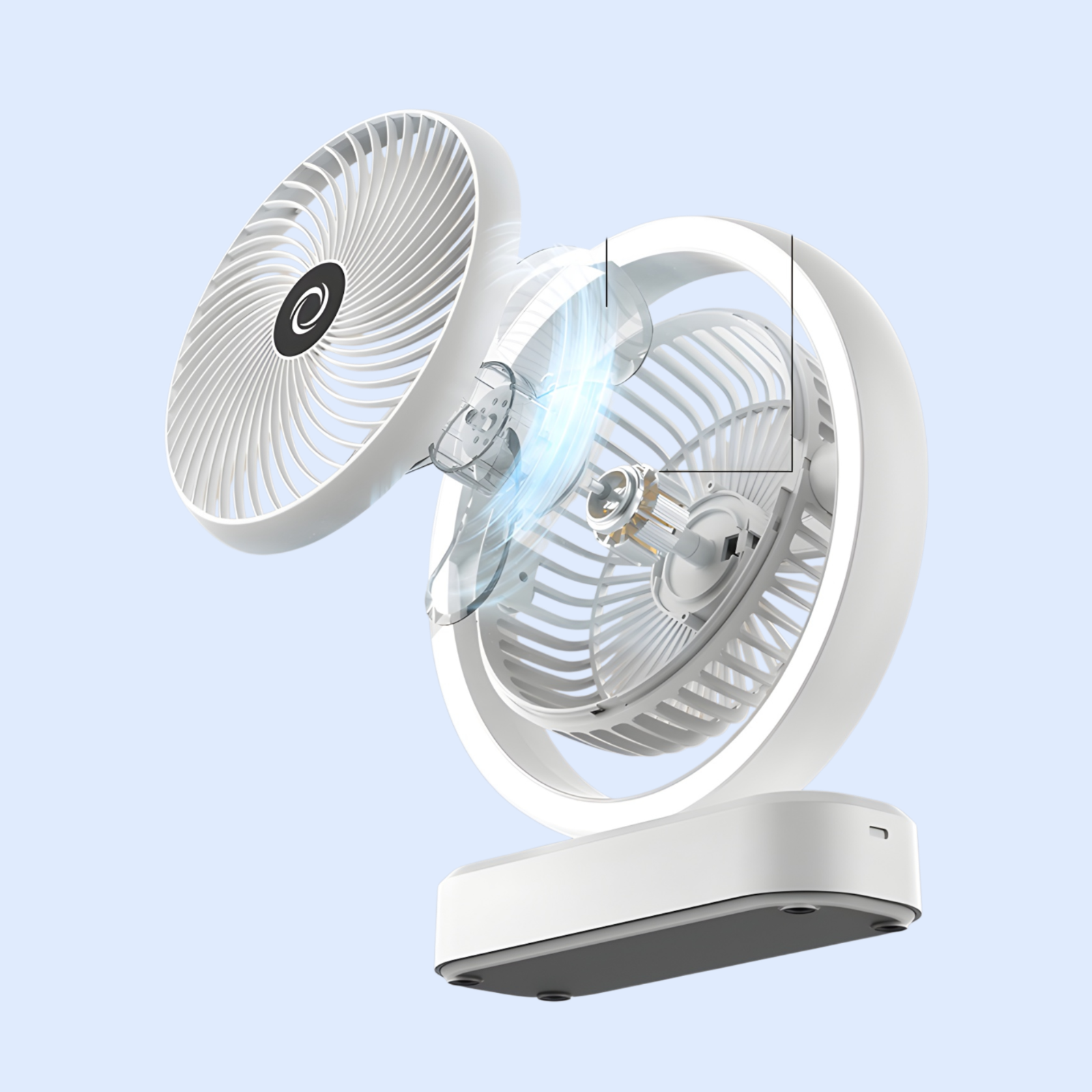 Office desk fan offers quiet cooling, adjustable speed, USB power, and compact design. Enhances workspace comfort and saves energy.