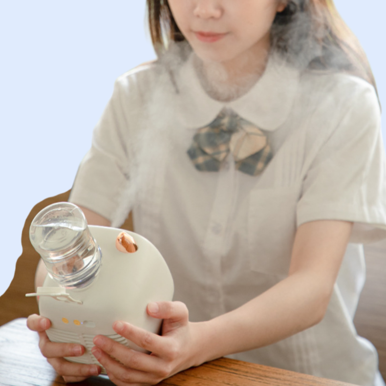 Creative little fox humidifier spray adds moisture, features cute fox design, USB power, quiet operation, and portable size for home or office.